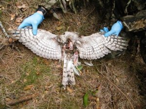 Despite the broad media coverage, very few articles mentioned the dead sparrowhawk that was found close to one of the traps that criminal gamekeeper Glenn Brown was operating. Also found close by was the body of a white pigeon. Mark Thomas, one of the RSPB investigators involved with catching Brown at it, has written an excellent little piece about the investigation here, alluding to what might have happened to the dead sparrowhawk and dead pigeon.