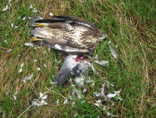 Two young buzzards and a sparrowhawk have been illegally poisoned in Ireland. The bait this time? Live pigeons, that were smeared with the banned pesticide Carbofuran, tethered to the ground with wire with their wings clipped.