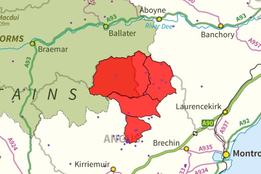 It’s interesting that this press release refers to the grouse moors of the Angus Glens – a well known hotbed of illegal raptor persecution for over a decade. Here’s a map to illustrate the point: