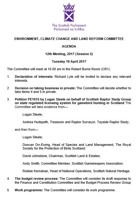 This morning the Scottish Parliament’s Environment Committee will hear evidence on the Scottish Raptor Study Group’s petition to introduce a licensing system for all game bird hunting in Scotland.