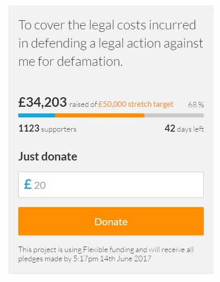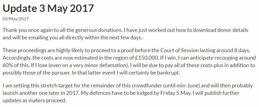 Two weeks ago we blogged about a new crowdfunding initiative that had been set up to help Andy Wightman fight accusations of alleged defamation (see here).