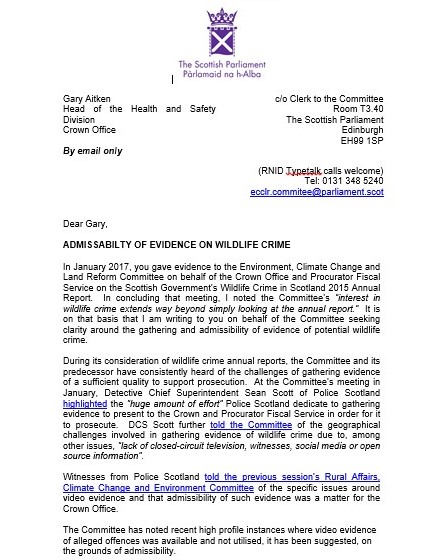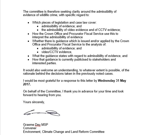 October 2014: Environment Minister Paul Wheelhouse in response to a letter from the Cairngorms National Park Authority asking for help to address raptor persecution: