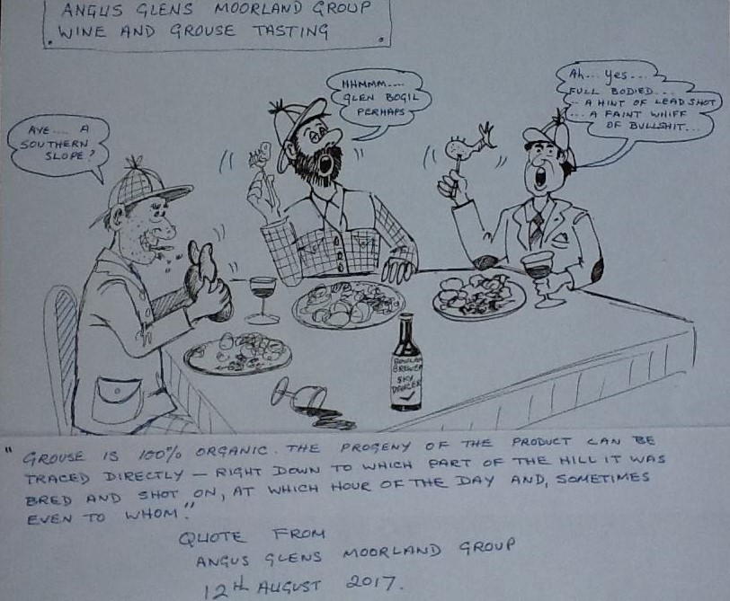 Dear oh dear. It’s only been six weeks since Michelin-starred chef Andrew Fairlie was told by Perthshire Council’s Food Standards Officer to stop referring to red grouse as being organic (see here), and yet now the Angus Glens Moorland Group Coordinator is claiming that red grouse are “100% organic“.