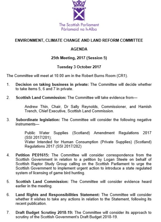 The Environment Committee first considered the petition in January 2017 (here) and then heard evidence from various organisations (SRSG, RSPB Scotland, SNH, SGA and SLE) in April 2017 (here).