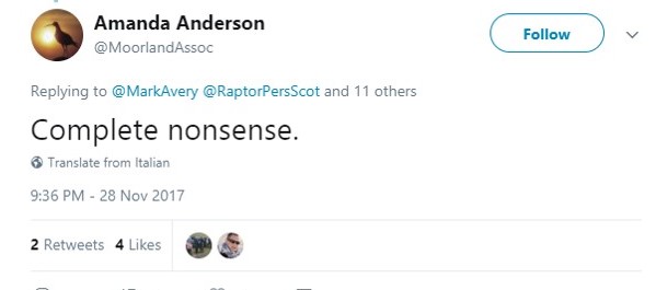 Unfortunately, when asked to clarify which part of the news article she deemed to be “complete nonsense”, she has refused to comment further. This is quite unhelpful. Surely, if she didn’t tell the RPPDG meeting that grouse moor owners want to apply for licenses to kill Marsh harriers, she would take every opportunity to be crystal clear about that? We’d be more than happy to retract the information if it can be shown that the conversation didn’t take place and that our sources have provided misinformation. Her refusal to enter into a discussion looks more like a damage limitation exercise than a desire to clear up a supposedly inaccurate report. That’s a shame.