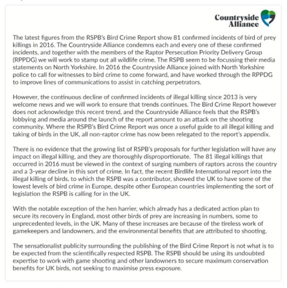 Have a close read of the SGA’s response – they say they’ve expelled six members in five years for ‘alleged wildlife crimes’, suggesting that these wildlife crimes might not actually have happened, even though those gamekeepers were expelled precisely because they had been convicted in a court of law. They had criminal convictions for actual raptor persecution crimes, not alleged crimes.
