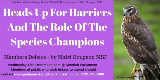 Today in the Scottish Parliament there’ll be a Members’ Debate on the controversial Heads Up for Hen Harriers Project.