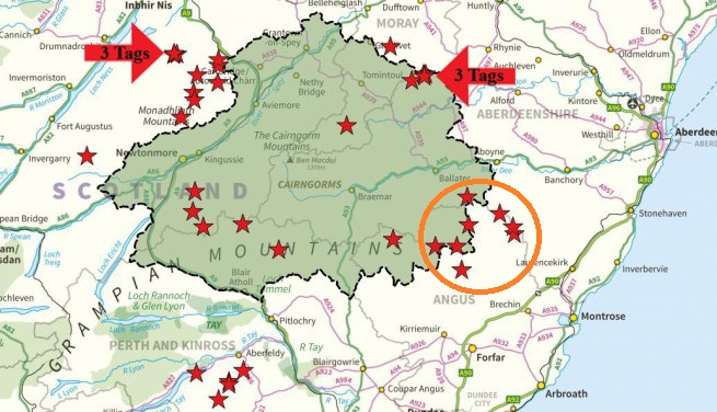 In addition to the above incidents, there hasn’t been a single successful hen harrier breeding attempt in the Angus Glens since 2006, and the area is also one of the areas identified as a hotspot for satellite-tagged golden eagles that have ‘disappeared’ in suspicious circumstances. In addition to the eagles that have ‘disappeared’ here, and the ones that have been found illegally poisoned or illegally trapped, a further golden eagle tag was found on a grouse moor here, “whose housing had been stabbed by a sharp implement and whose harness had been cut cleanly by a sharp instrument”, according to the golden eagle satellite tag review.