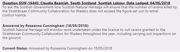 Sorry SNH, but none of these Parliamentary answers inspire any confidence in your ability to effectively monitor the implentation of this raven cull licence, nor the credibility of your reasons for issuing it in the first place.