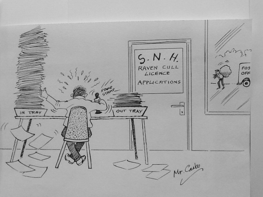 1. They’ll neither know or care about breeding status. SNH has given them the go ahead to kill as many ravens as possible while the cull licence is in force and the numbers, breeding or otherwise will never be known. Can RPUK make an FOI to have sight of the application?