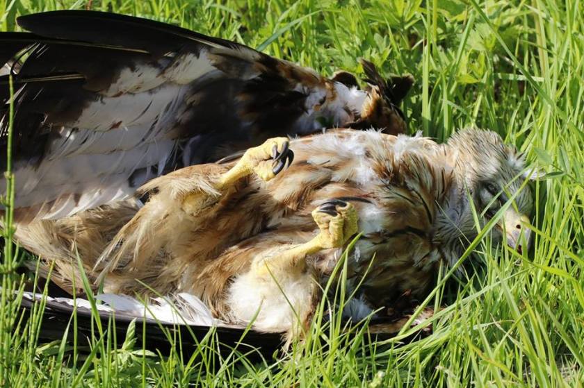 Back in May there was a report (and several photographs) on social media of a dead red kite that had been found on 9th May 2018 by a member of the public, “10-12ft up in a bush” at Woodchurch, Kent.