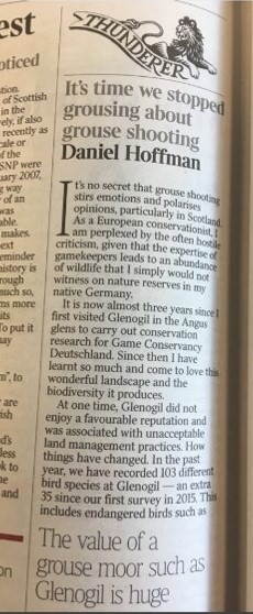 This claim seemed to be based on a report by a German scientist (Dr Daniel Hoffman) who has been conducting ‘surveys’ on Glenogil Estate in the Angus Glens for three years (although the first year of survey was conducted over only four days in late April 2015 in appalling weather conditions – we blogged about it at the time – see here and scroll down to the bottom).