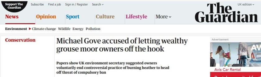 Aside from the newsworthiness of Michael Gove’s apparent interest in protecting grouse moor owners from the potential constraints of European environmental protection regulation, there’s something else very interesting about this story, as referenced by Mark Avery this morning.