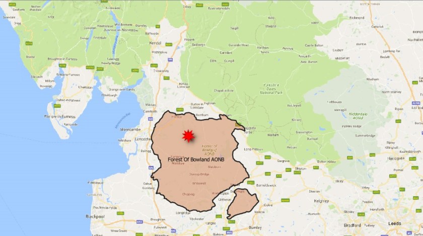 [RPUK map showing Goodber Common in the Forest of Bowland Area of Outstanding Natural Beauty]