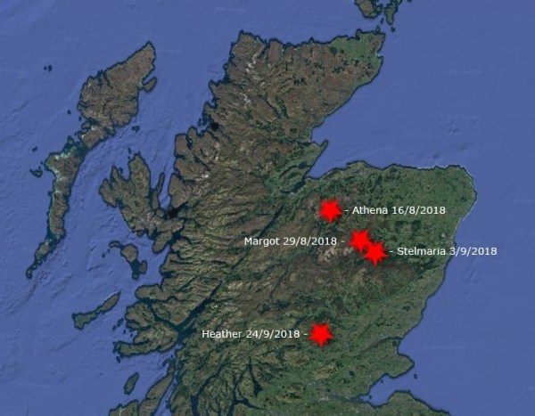 Two of the birds were tagged on the National Trust for Scotland’s Mar Lodge Estate in Aberdeenshire this summer. Margot disappeared on 29th August, with her last known position on a grouse moor on the Aberdeenshire/Moray border, a few miles south west of the Lecht ski centre. Stelmaria was last recorded on grouse moor a few miles north west of Ballater, Aberdeenshire on 3rd September. Stelmaria’s mother was DeeCee, a hen harrier tagged by the project in Perthshire in 2016.