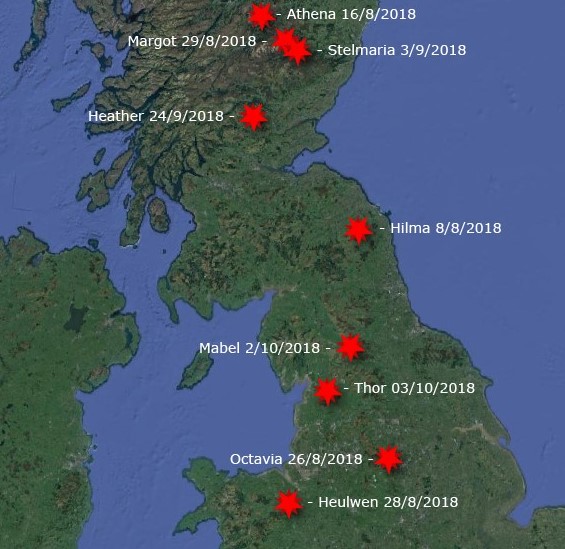 [RPUK map showing the last known locations of nine satellite-tagged hen harriers across the UK uplands in 2018 before their tags suddenly and unexpectedly cut out and the birds ‘vanished’]