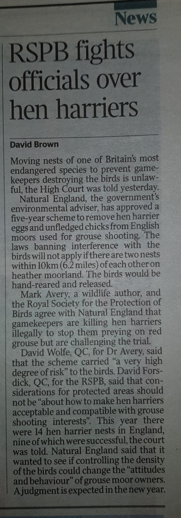 Knowing that there’s a difference of opinion on hen harriers between the grouse shooting and conservationists is totally irrelevant to the conservation of the hen harrier; it’s illegal persecution on driven grouse moors that threatens this species’ conservation status, nothing else. We don’t need dialogue, conflict management, relationship building, shared solutions, brood meddling or anything else, just effective enforcement of the law. It’s pretty simple, or it would be if we had a government without vested interests that was prepared to do what the vast majority of its electorate expect it to do and operate a zero tolerance policy on organised crime.