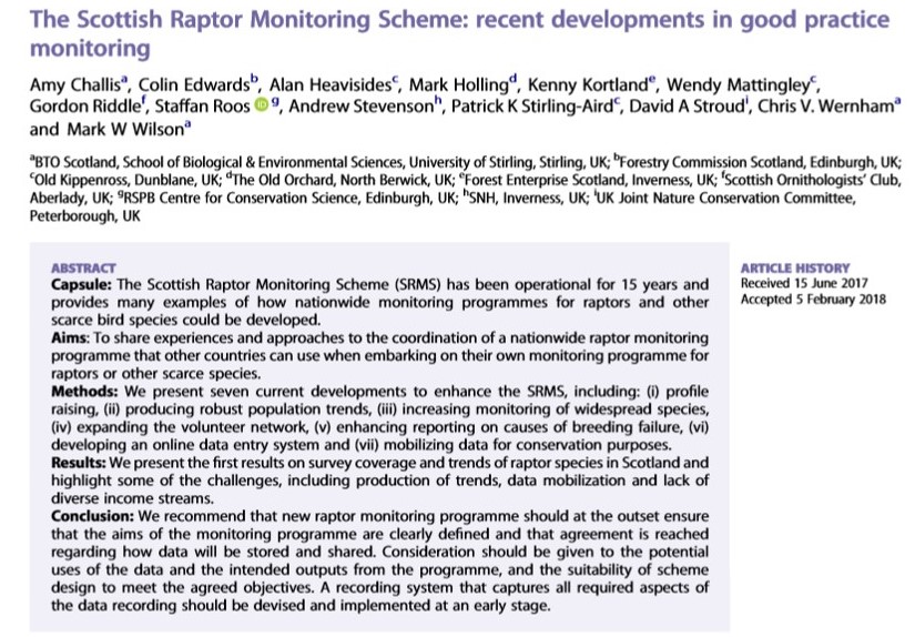A new scientific research paper on the SRMS’s experiences and approach to nationwide raptor monitoring has just been published in the journal Bird Study. The paper is available in full here: the scottish raptor monitoring scheme recent developments in good practice monitoring