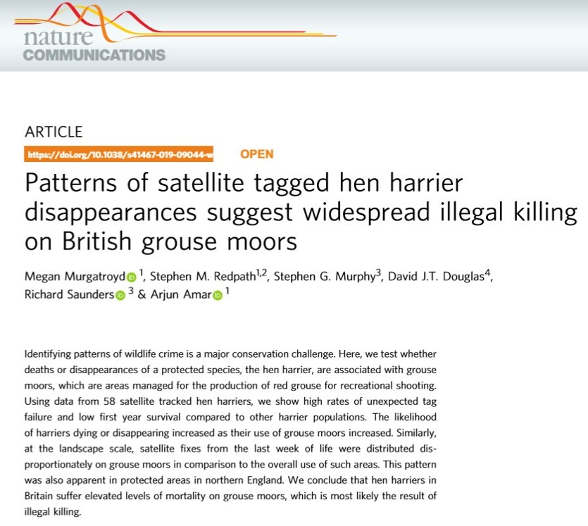 The paper is open access and can be downloaded here: Widespread illegal killing of HH on British grouse moors