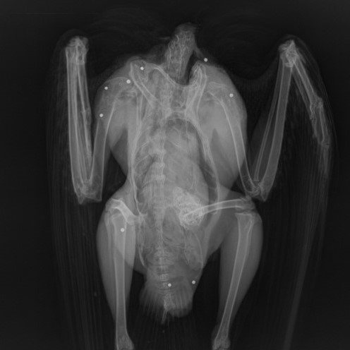 The x-ray revealed as many as nine pieces of shot in the raven’s body. The cause of the bird’s missing head however is not known.