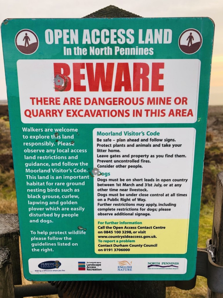 These public information/warning signs had been endorsed by various authorities such as Natural England and the North Pennines AONB (see logos) and undoubtedly provide a useful public service: