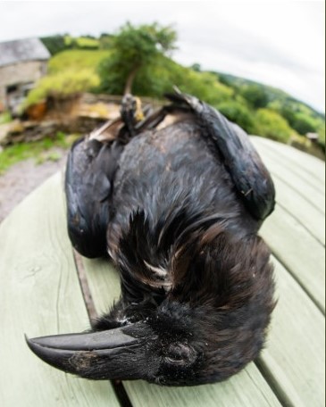 [The illegally poisoned raven, photo from @RSPBBirders]