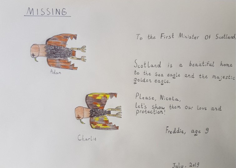 Young kids (and some adults) were sufficiently motivated to draw pictures of eagles, write poetry and even create clay models of dead eagles to send to First Minister Nicola Sturgeon:
