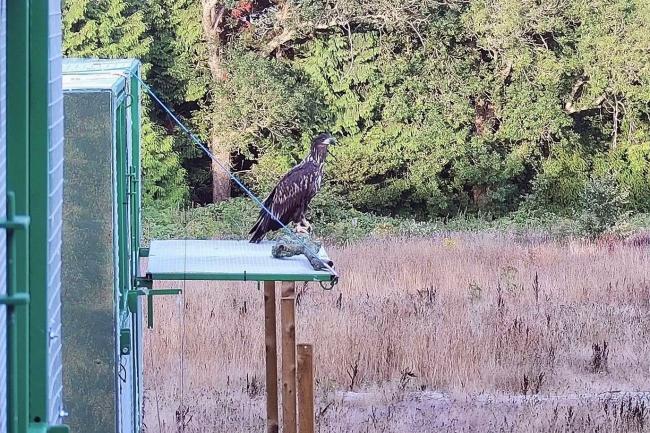 [One of the first White-tailed eagles to leave the release aviary. Photo by Forestry England]
