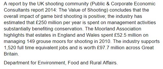 ‘A report by the UK shooting community concludes that the overall impact of game bird shooting is positive‘.