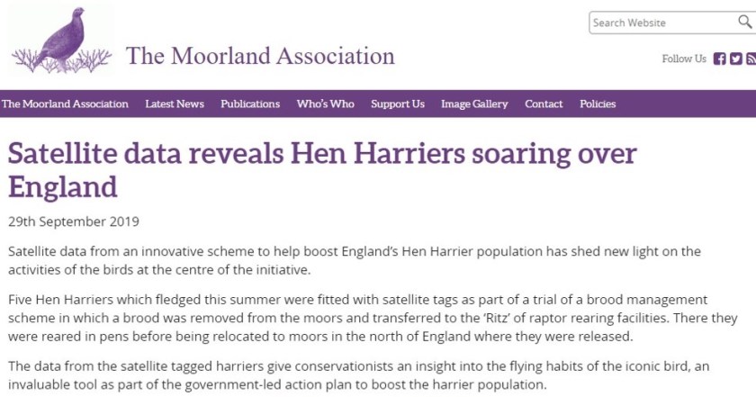 However, if you’d just seen the Moorland Association’s headline and first few paragraphs of their press release you’d never know that two of the five have disappeared in suspicious circumstances. This latest media output is perhaps the most disingenuous we’ve ever seen from the Moorland Association, and that’s saying something from an organisation notorious for distorting the facts!