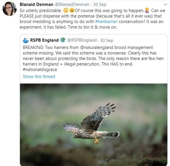 “Restoring the hen harrier population to favourable conservation status across their entire range is one of Natural England’s key objectives, so any loss from such a small population is significant.”