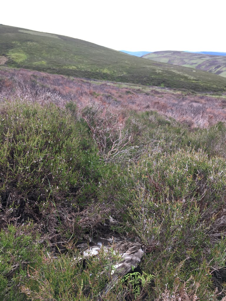 A member of the public found the dead female bird on a grouse moor on the Dumfries-shire/South Lanarkshire boundary near the village of Wanlockhead on 7 June 2019. A post mortem examination of the body by SRUC vets confirmed that the bird had died as a result of “penetrating trauma” injuries of unknown cause, with shooting a possibility. The examination also showed that the bird had previously been shot, with a shotgun pellet recovered from the left breast muscle. An investigation by Police Scotland has not identified a suspect for the bird’s shooting.