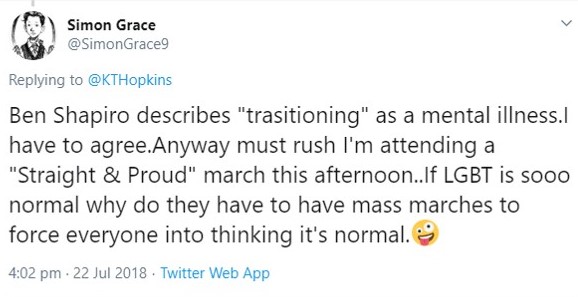 Simon Grace’s twitter feed makes for a fascinating read and perhaps explains why he’s managed to attract only four followers since June 2016.