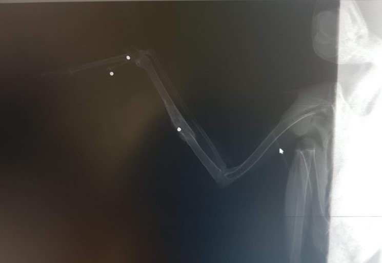 It was transferred to Blyth Wildlife Rescue where x-rays revealed shotgun pellets in both wings. The location of the shooting is unknown.