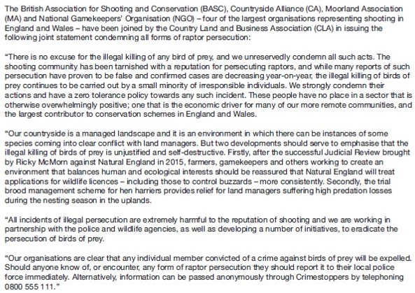 7. Interesting; in effect, what they are saying is that they have no control over the gamekeepers who work for them, and of course they don’t have control over farmers, so are farmers responsible for the whole lot? Or People with illegal access to guns, traps and poisons?