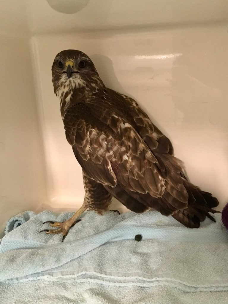 The buzzard, a male, was found by a local farmer who called the RSPCA and the charity’s Inspector Claire Mitchell collected the bird.