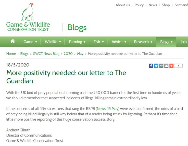 Have a look at these responses from the major game shooting organisations to last week’s news of a reported raptor persecution surge during lockdown. For those who missed the news, see here, or for ease have a look at this brilliant infographic published on Twitter by @RobThomas14, a senior lecturer at Cardiff University:
