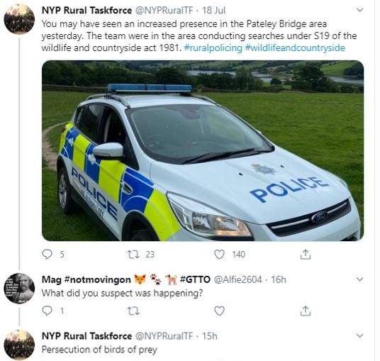 This is a very good example of proactive policing. The Nidderdale AONB is one of the UK’s most notorious hotspots for illegal raptor persecution, particularly on many of its driven grouse moors e.g. see here for a recent damning report published by the local AONB authority and for just a small sample of reported persecution crimes in recent years see here, here, here, here, here, here, here here, here, here, here, here and here.