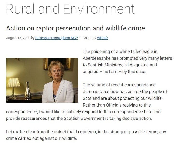 The title of the Cabinet Secretary’s latest missive is ‘ACTION ON RAPTOR PERSECUTION & WILDLIFE CRIME’. And action is indeed what we should continue to demand.