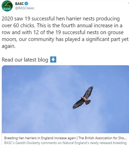 It’s funny, isn’t it, that the industry wants credit when hen harriers are allowed to breed on a grouse moor but it refuses to accept any responsibility for the hundreds of vacant breeding territories right across the English (and Scottish) uplands, nor responsibility for the suspicious disappearance of at least 72% of satellite-tagged hen harriers that are, according to Natural England’s own data, presumed to have been illegally killed on grouse moors.