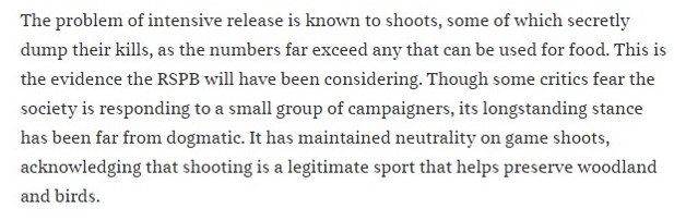 “I am still pleased that the RSP[of some]B have made a historic step forward on this issue…” Nonsense. No they haven’t Keith. They are still ‘OK’ with killing birds for fun.