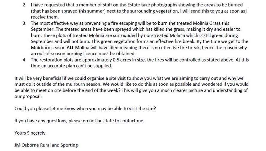 So, Osborne had been notified by SNH, in mid-August, that a licence to undertake out-of-season muirburn was not going to be issued. Osborne immediately sent a letter of appeal to challenge that decision and here’s what happened next:
