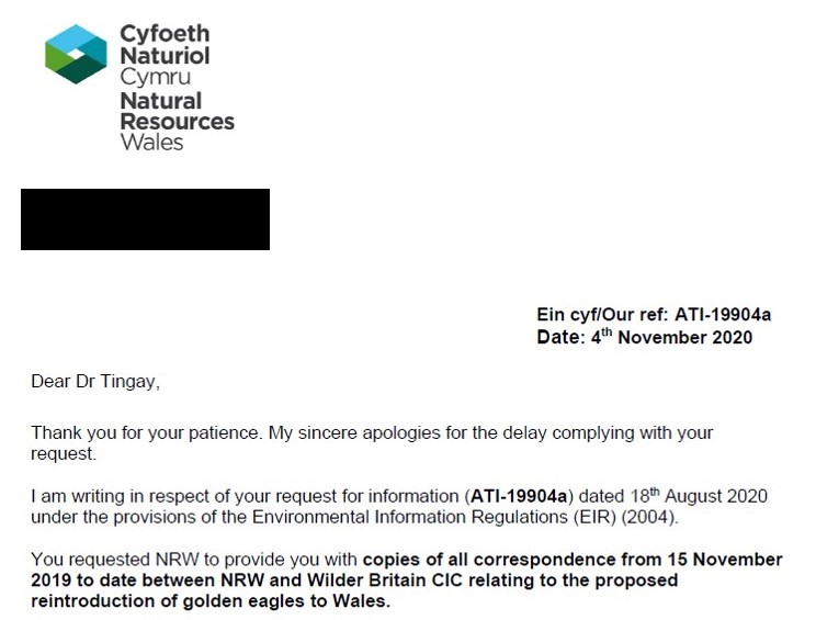 Way back in February 2019, in a publicity fanfare, a claim was made that a licence application to reintroduce golden eagles to Snowdonia would be submitted to Natural Resources Wales (NRW) ‘by summer’ by an organisation called Wilder Britain (see here and here).