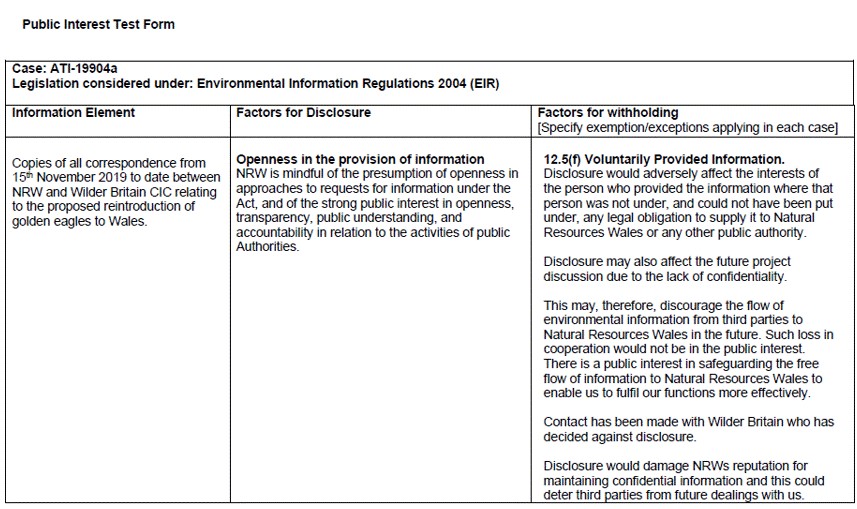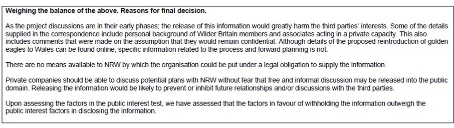 Interesting. An appeal has been lodged with NRW because I believe it’s in the public interest to see what advice NRW has been giving to O’Donoghue about a proposed reintroduction scheme.
