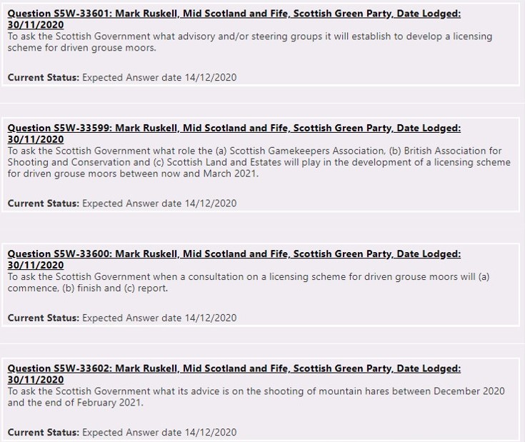 8. Well done Mr Ruskell. Keep asking the awkward questions and make sure that the SNP answer them in full if possible. Especially that of the shooting of mountain hares.