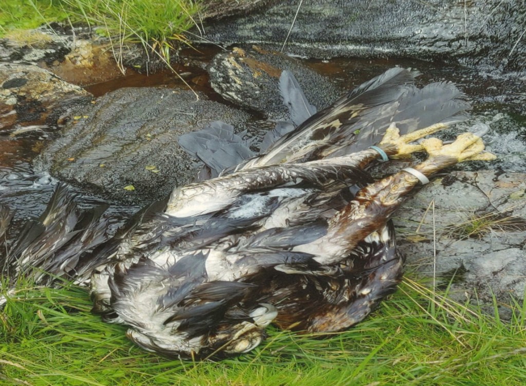 In August 2020 a walker found an adult golden eagle dead in a river in Powys, Wales.