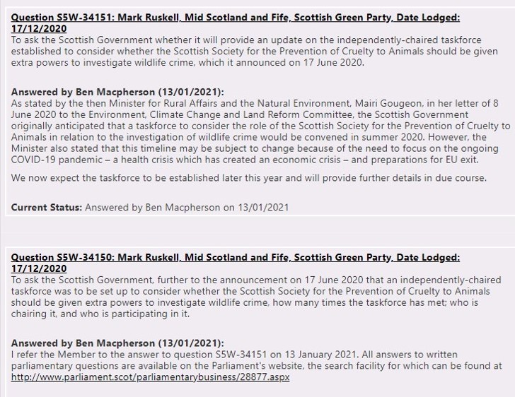 December 2020: Mark Ruskell (Scottish Greens) submits two Parliamentary questions asking about the status of the taskforce and who is serving on it (see here).