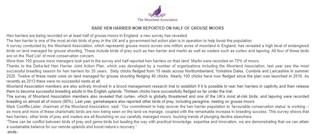2. “Unfortunately for the Moorland Association, the criminals within the grouse shooting industry just can’t stop killing hen harriers, or other raptors,…”
