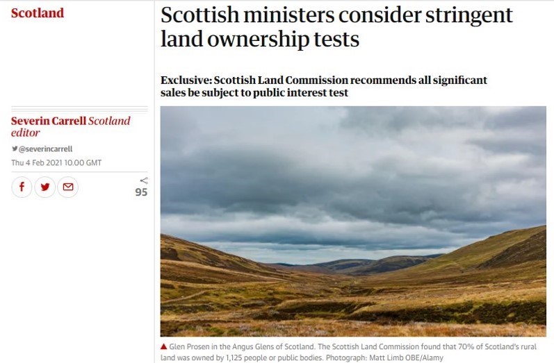 The Scottish Land Commission (SLC), an influential advisory body, has recommended that all large or important land sales in Scotland should be subject to a legally enforceable public interest test to make sure the sale has wider social or environmental benefits.