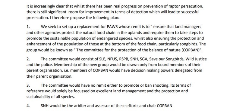 The idea of removing one dysfunctional group (PAW Scotland Raptor Group) and replacing it with another dysfunctional one (COPBAN) is hilarious. I did laugh, a lot, when I read about those plans. And by the way, SLE, nobody has asked Wild Justice whether it’d be interested in participating and I guess nobody has asked the groups already serving on the (dysfunctional) PAW Raptor Group how they’d feel about being side-lined. I’m pretty sure BASC, GWCT, Scottish Raptor Study Group etc would all have something to say!